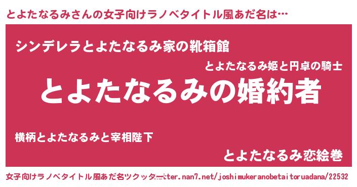 | 意味不明あだ名 | 『とよたなるみフォーエバー』 |