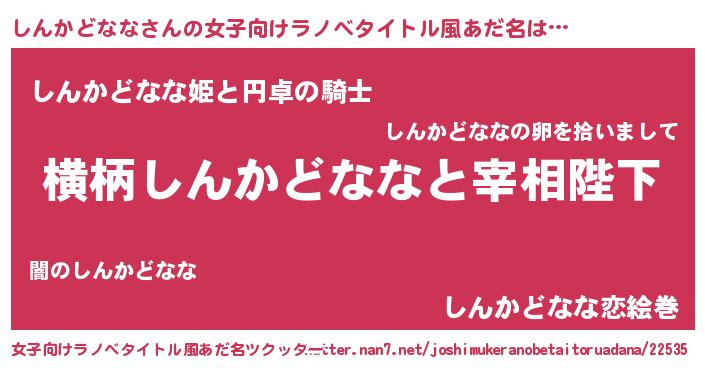 | 男性向けラノベタイトル風あだ名 | 『しんかどななに滅ぼされるだけの簡単なお仕事です』 |