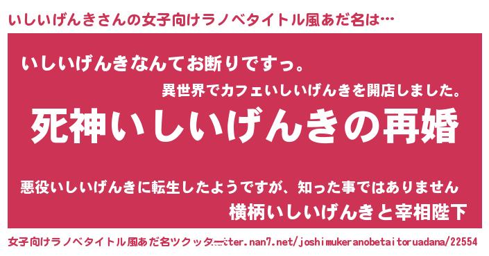 | 男性向けラノベタイトル風あだ名 | 『ノーゲーム・ノーイシイゲンキ』 |