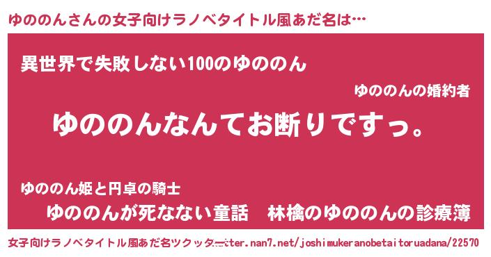 | 男性向けラノベタイトル風あだ名 | 『魔法科高校のゆののん』 |
