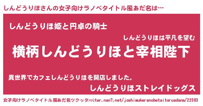 | 男性向けラノベタイトル風あだ名 | 『しんどうりほに滅ぼされるだけの簡単なお仕事です』 |