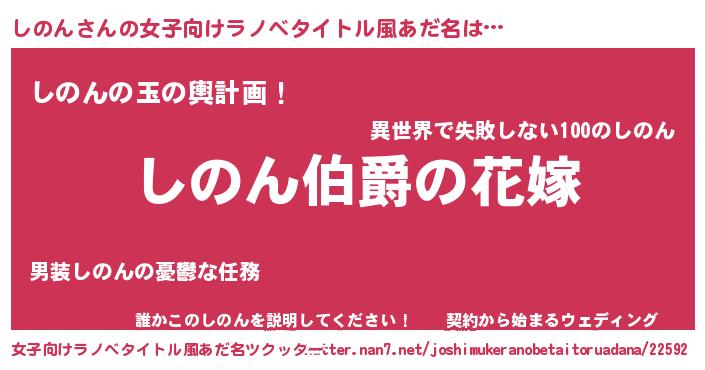 | 男性向けラノベタイトル風あだ名 | 『やはりしのんの青春ラブコメはまちがっている 』 |