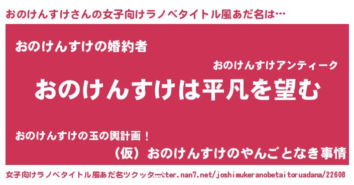 | 男性向けラノベタイトル風あだ名 | 『ダンジョンにおのけんすけを求めるのは間違っているだろうか』 |
