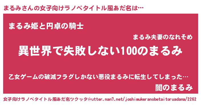 | 男性向けラノベタイトル風あだ名 | 『まるみという概念が存在しない退屈な世界 』 |