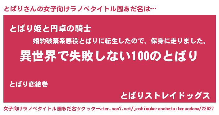 | 男性向けラノベタイトル風あだ名 | 『とばりという概念が存在しない退屈な世界 』 |