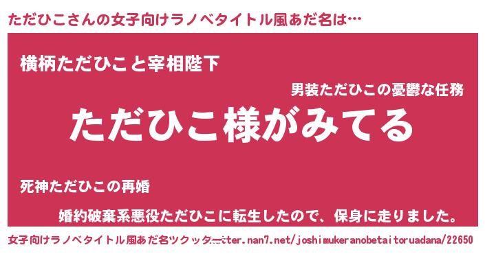 | 男性向けラノベタイトル風あだ名 | 『ただひこの嫁は女の子じゃないと思った?』 |