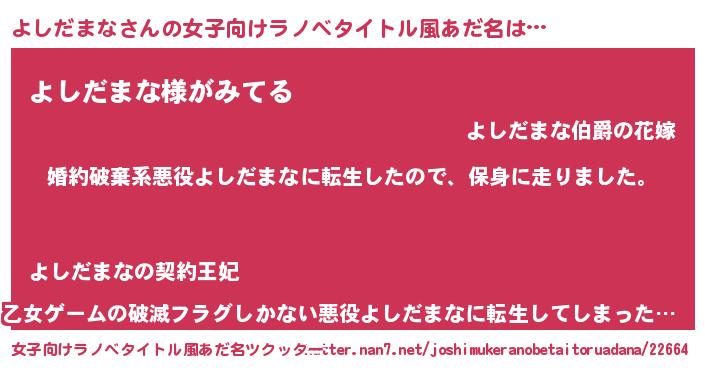 | 胡散臭い通販商品みたいなあだ名 | 『信頼と実績のネックレス…その名も「よしだまな」』 |