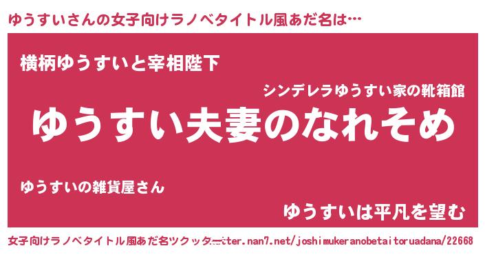 | ピコ太郎風あだ名 | 『ユユ太郎』『ユウ史郎』『ピユ太郎』 |