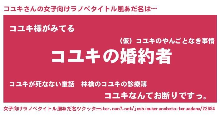 | ファンタジー風あだ名 | 『エターナルコユキー』『ゼコユトゥ』 |