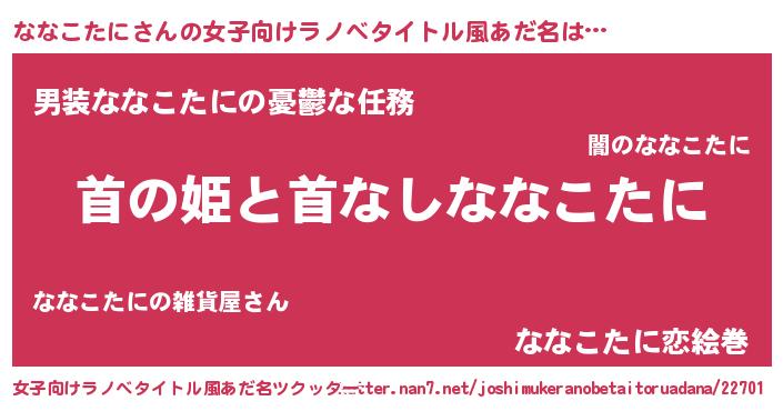 | 男性向けラノベタイトル風あだ名 | 『はたらくななこたにさま!』 |