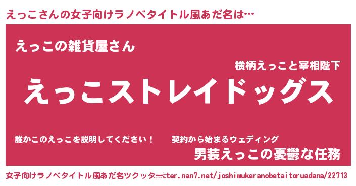 | 男性向けラノベタイトル風あだ名 | 『Re:えっこから始める異世界生活』 |
