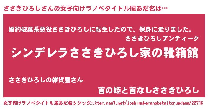 | 意味不明あだ名 | 『たけのこ科ささきひろし属』 |