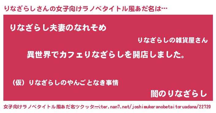| 男性向けラノベタイトル風あだ名 | 『誰もが恐れるあのりなざらしが、ぼくの専属メイドになるようです。』 |