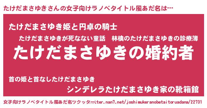 | 肩書あだ名 | 『たけだまさゆき大統領』 |