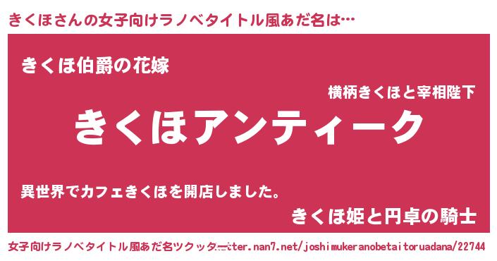 | 男性向けラノベタイトル風あだ名 | 『魔法科高校のきくほ』 |