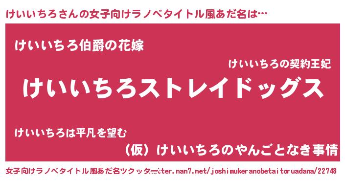 | 意味不明あだ名 | 『自称けいいちろ』『ペロリンけいいちろ』 |