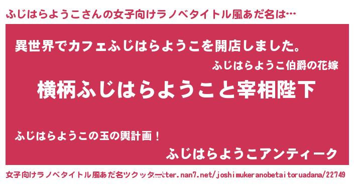 | 男性向けラノベタイトル風あだ名 | 『ふじはらようこに滅ぼされるだけの簡単なお仕事です』 |