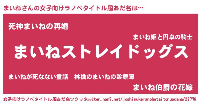 | 男性向けラノベタイトル風あだ名 | 『Re:まいねから始める異世界生活』 |