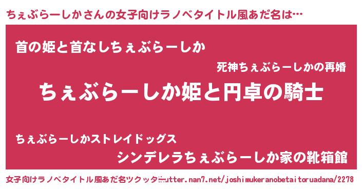 | 男性向けラノベタイトル風あだ名 | 『ちぇぶらーしかの憂鬱』 |