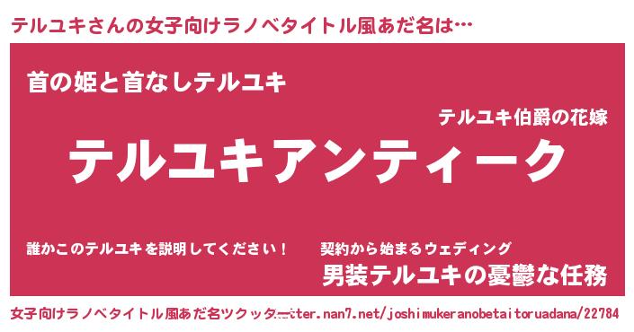 | ヒーロー風カッコイイあだ名 | 『ウルトラ戦士テルユキ』『幻影騎士テル』 |