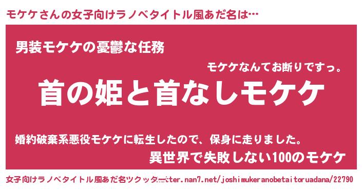 | 男性向けラノベタイトル風あだ名 | 『はたらくモケケさま!』 |