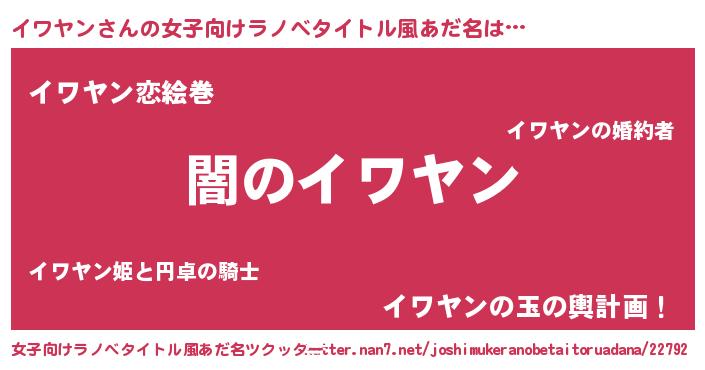 | 男性向けラノベタイトル風あだ名 | 『Re:イワヤンから始める異世界生活』 |