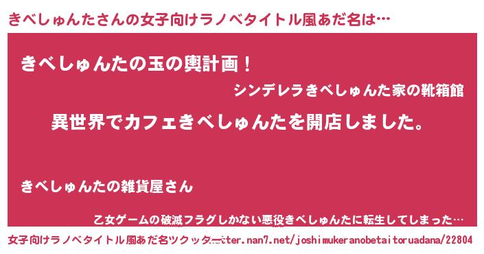 | 男性向けラノベタイトル風あだ名 | 『誰もが恐れるあのきべしゅんたが、ぼくの専属メイドになるようです。』 |
