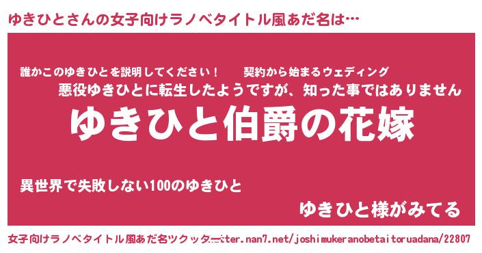 | 意味不明あだ名 | 『ゆきひとフォーエバー』 |