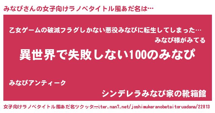| 胡散臭い通販商品みたいなあだ名 | 『絶対に幸福をもたらす健康食品…その名も「みなぴ」』 |
