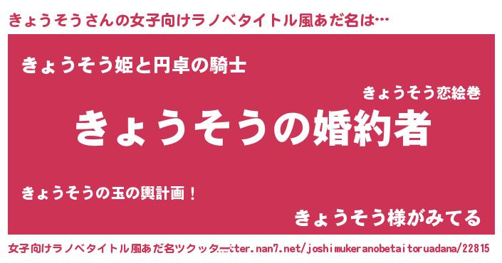| 恥ずかしいあだ名 | 『きょっちょ』『プリティーきょうそう』 |