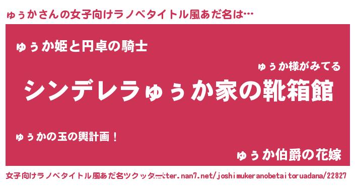 | 胡散臭い通販商品みたいなあだ名 | 『必ず成功する霊験あらたかなお札…その名も「ゅぅか」』 |