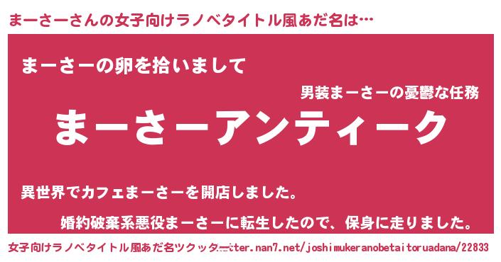 | 男性向けラノベタイトル風あだ名 | 『魔法科高校のまーさー』 |