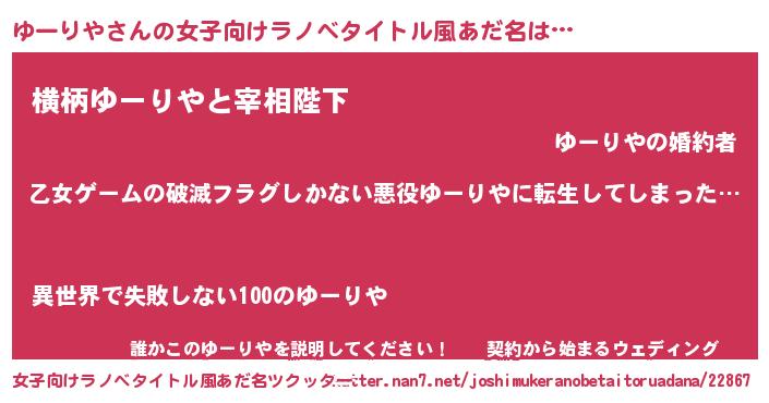 | 男性向けラノベタイトル風あだ名 | 『この素晴らしい世界にゆーりやを!』 |