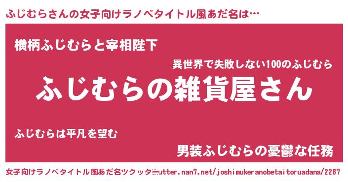 | 男性向けラノベタイトル風あだ名 | 『やはりふじむらの青春ラブコメはまちがっている 』 |