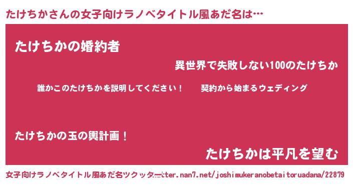 | 男性向けラノベタイトル風あだ名 | 『タケチカアートオンライン』 |