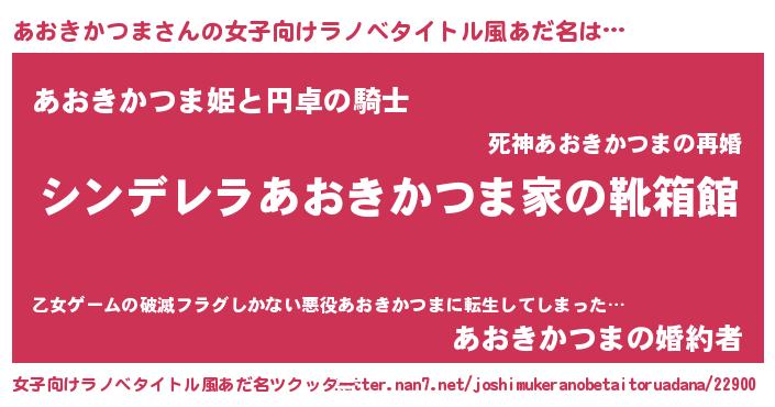 | 男性向けラノベタイトル風あだ名 | 『冴えないあおきかつまの育てかた』 |