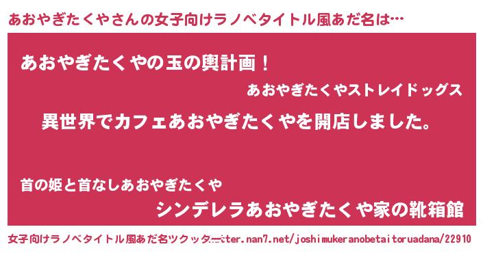 | 胡散臭い通販商品みたいなあだ名 | 『前代未聞の健康食品…その名も「あおやぎたくや」』 |