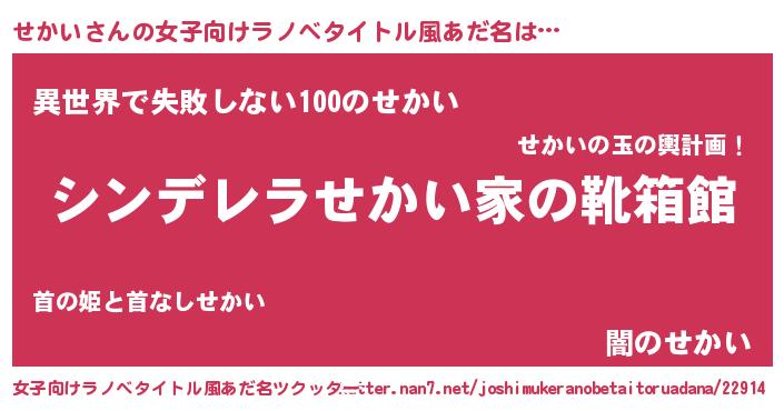 | 男性向けラノベタイトル風あだ名 | 『冴えないせかいの育てかた』 |