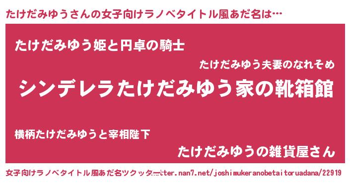 | 男性向けラノベタイトル風あだ名 | 『緋弾のタケダミユウ』 |