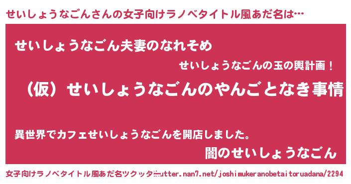 | 胡散臭い通販商品みたいなあだ名 | 『必ず成功するブレスレット…その名も「せいしょうなごん」』 |