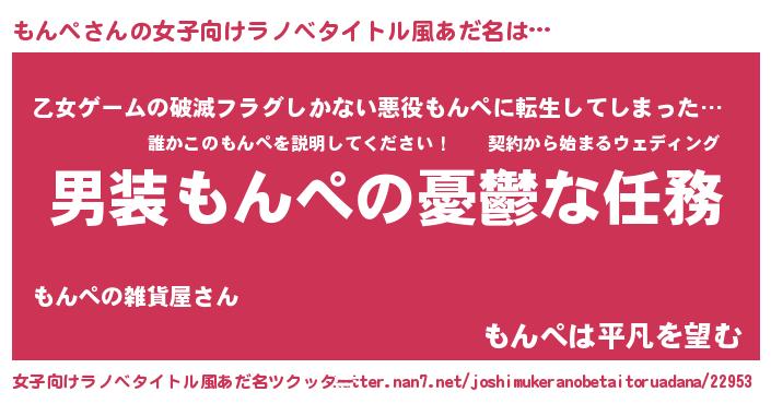 | 胡散臭い通販商品みたいなあだ名 | 『あなたにだけ特別に提供する100年もののヴィンテージワイン…その名も「もんぺ」』 |