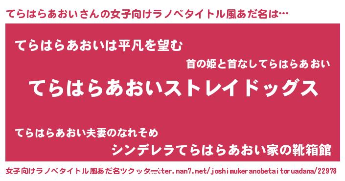 | 意味不明あだ名 | 『自称てらはらあおい』 |