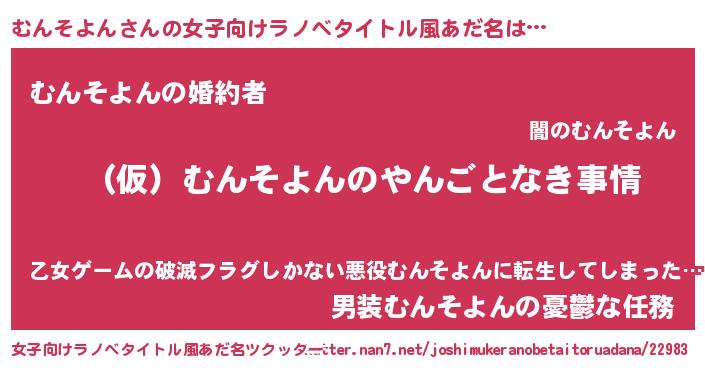| 男性向けラノベタイトル風あだ名 | 『むんそよんの憂鬱』 |