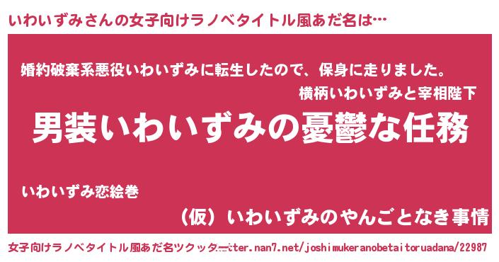 | 男性向けラノベタイトル風あだ名 | 『冴えないいわいずみの育てかた』 |