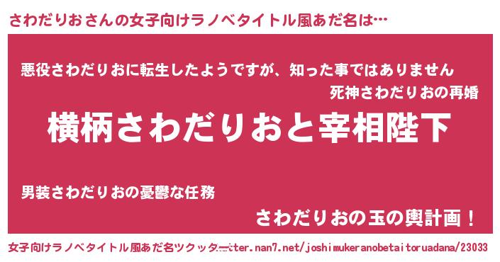 | 胡散臭い通販商品みたいなあだ名 | 『世界中を虜にした世界で10本だけ現存している希少なブランデー…その名も「さわだりお」』 |
