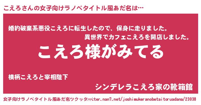 | 男性向けラノベタイトル風あだ名 | 『こえろの嫁は女の子じゃないと思った?』 |