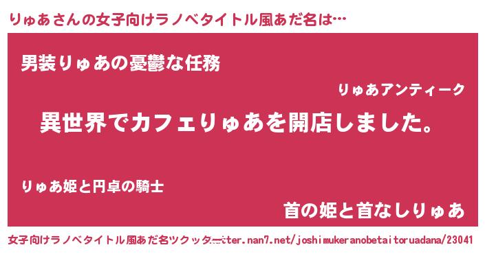 | 男性向けラノベタイトル風あだ名 | 『誰もが恐れるあのりゅあが、ぼくの専属メイドになるようです。』 |