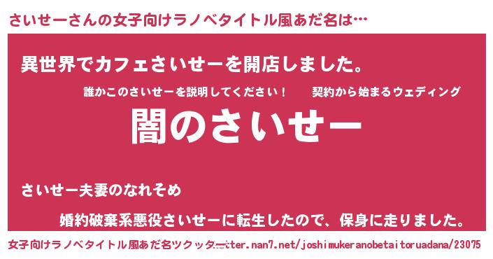 | 男性向けラノベタイトル風あだ名 | 『Re:さいせーから始める異世界生活』 |
