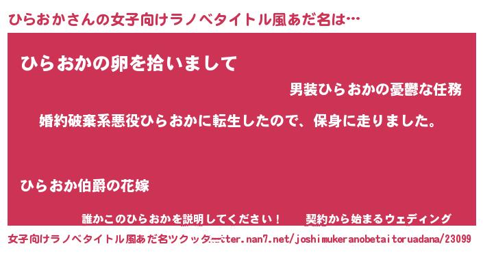 | 胡散臭い通販商品みたいなあだ名 | 『信頼と実績のサプリメント…その名も「ひらおか」』 |