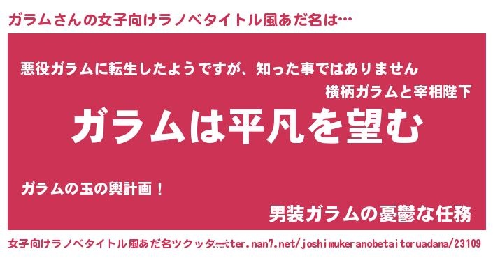 | 男性向けラノベタイトル風あだ名 | 『ダンジョンにガラムを求めるのは間違っているだろうか』 |